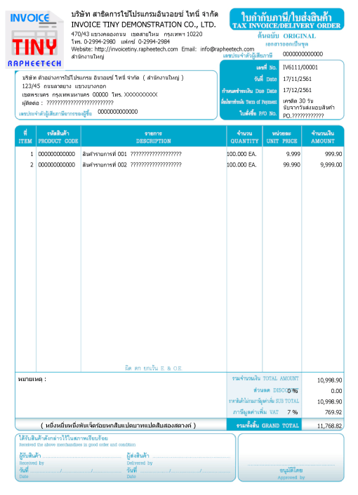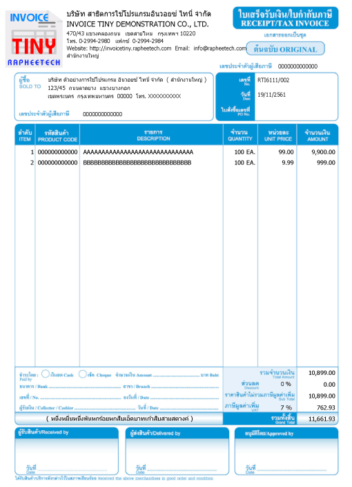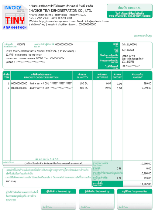 แนะนำโปรแกรมพิมพ์บิล Tiny ใบกำกับภาษี/ใบส่งของ/ใบเสร็จรับเงิน